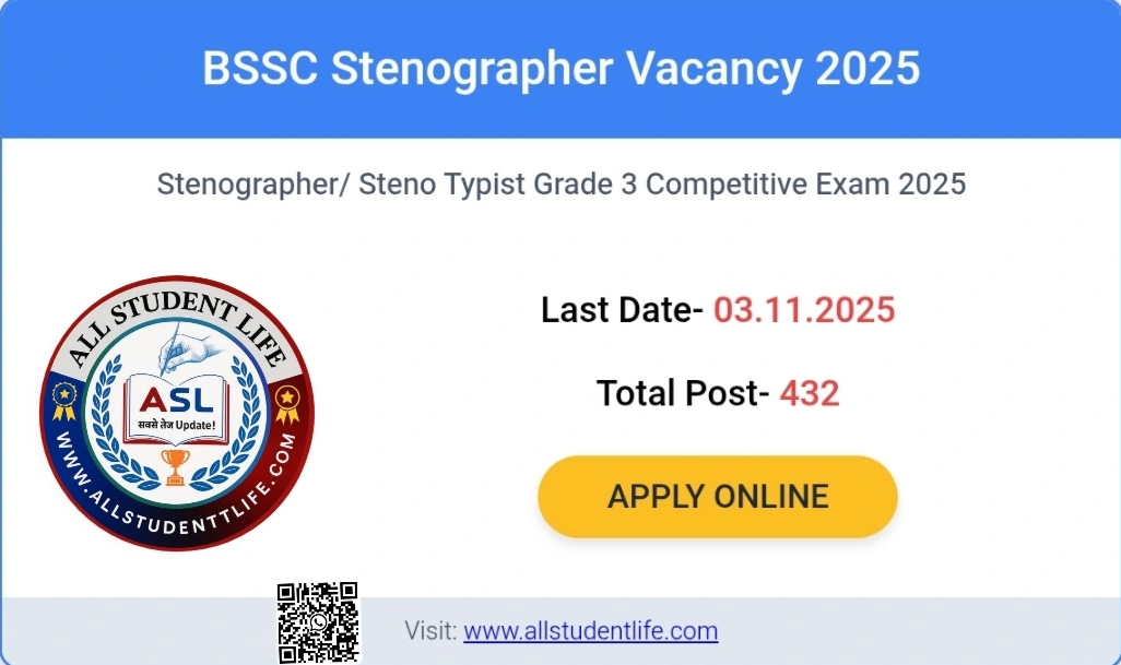 Information: The Bihar Staff Selection Commission (BSSC) has announced an exciting career opportunity for aspiring stenographers and steno-typists. Through Advt. No. 07/25, the Commission invites applications for 432 Grade 3 posts across various state departments, offering a Level-4 pay scale of ₹25,500 – 81,100 plus allowances. This is a golden chance for skilled candidates to secure a permanent government job with excellent growth prospects.